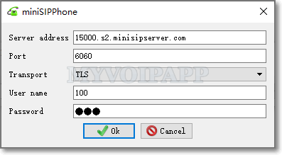 miniSIPPhone should be configured to connect to a SIP server (for example, miniSIPServer). Please click menu "File - SIP account" or press "F5" key directly to show the configuration window.